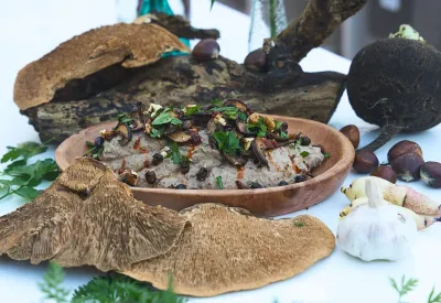 Celeriac Sweet Chestnut Purée with Crispy Mushrooms