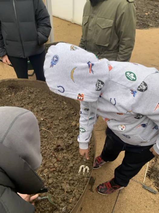 Over the past two months, the education team has been working in partnership with The Grove School, Tottenham, to support a group of sixth form students with severe learning disabilities (SLD), offering meaningful access to nature and food-growing at OmVed Gardens.