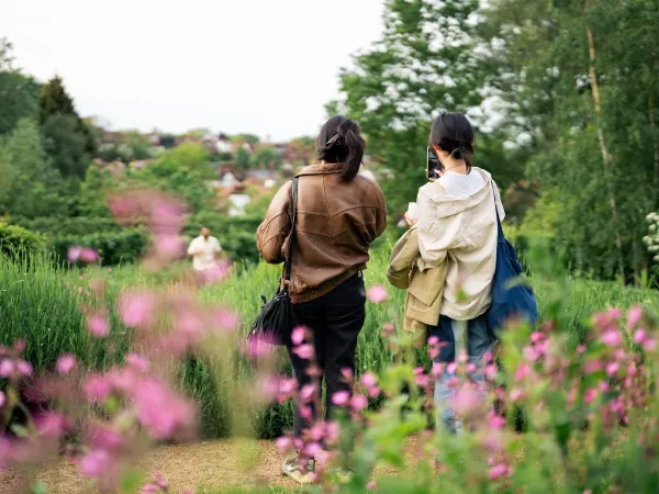OmVed is a garden, exhibition and educational space in North London exploring food, ecology and health for health and climate resilience. Once a tarmacked hillside, since 2017 we have been creating an urban greenscape, restoring the ecosystem and increasing biodiversity in the garden using permaculture principles. We provide a space for people and communities to deepen their connection with nature and reimagine how we can come together to improve food systems, environment, connection to nature, local habitats and more.