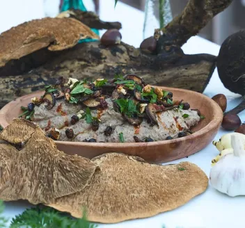 Celeriac sweet chestnut puree with crispy mushrooms